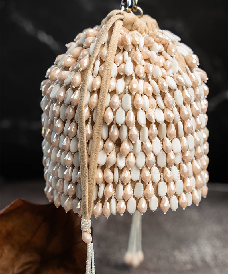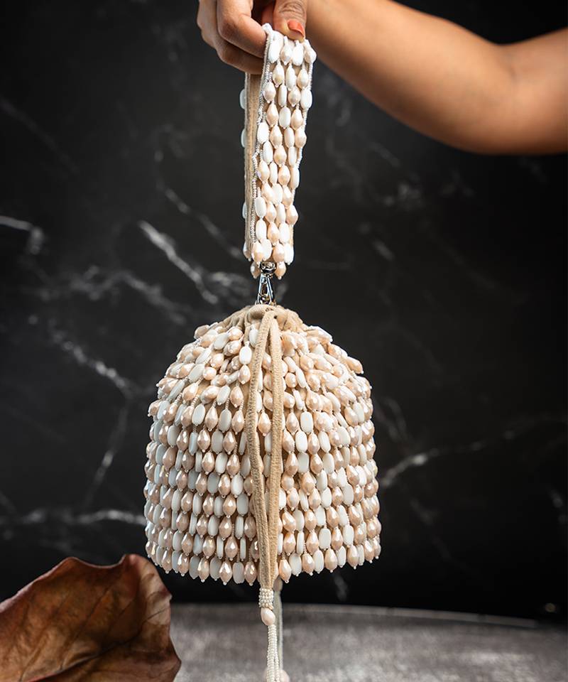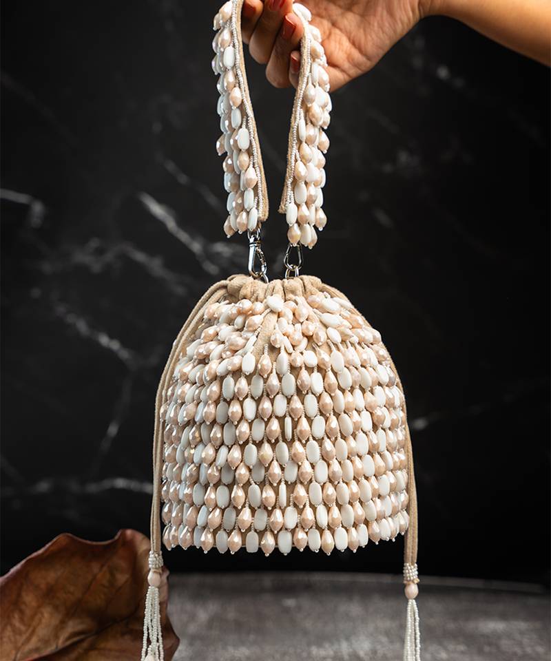 | Product Description | This Tasseled Potli Is A Stunning Blend Of Elegance And Craftsmanship, Featuring Lustrous Beads And Intricate Work In A White And Light Gold Palette. Finished With Delicate Tassels, It’s The Perfect Accessory For Weddings, Festive Events, Or Evening Soirées.