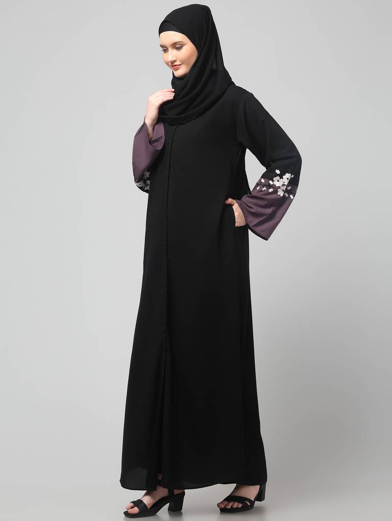 Product Name | Embrodery And Conytrast 2 Side Pocket Sleeves Front Open Abaya | |