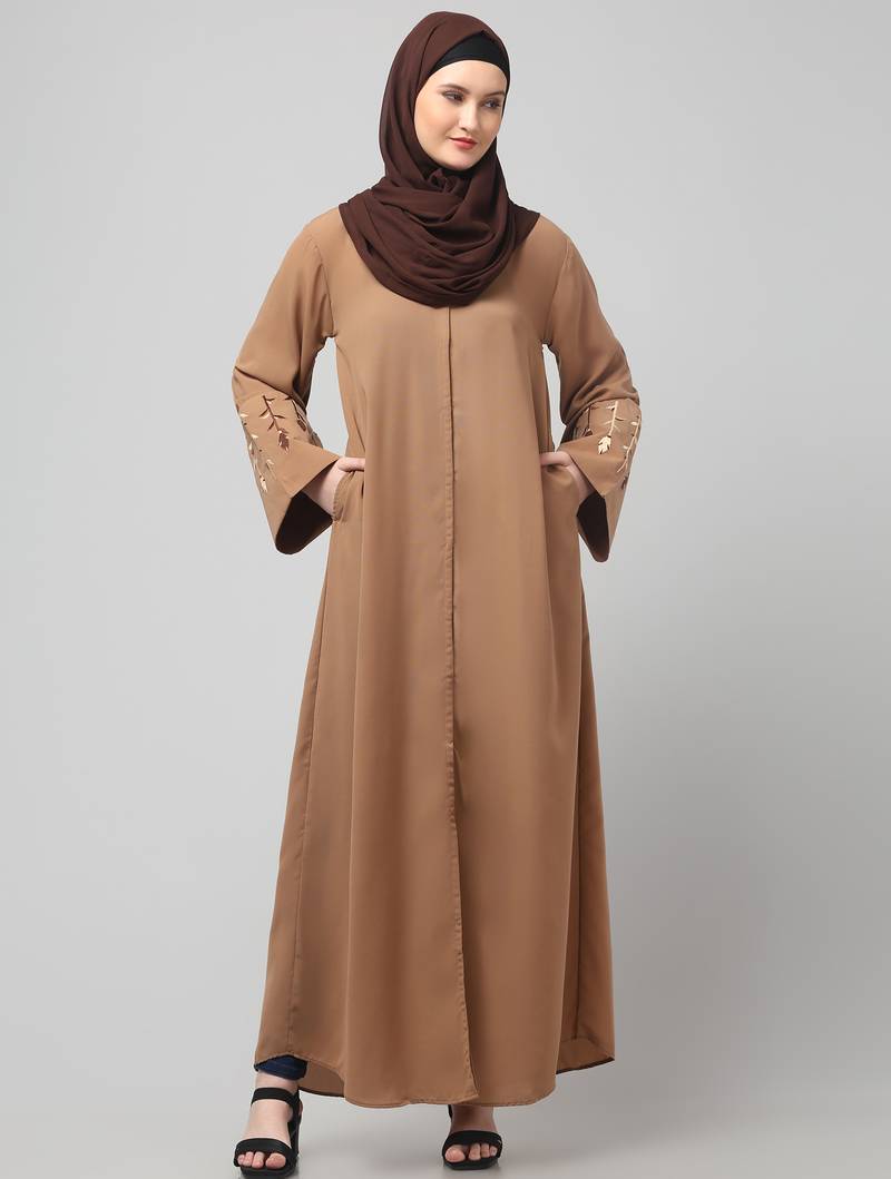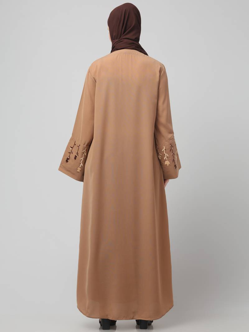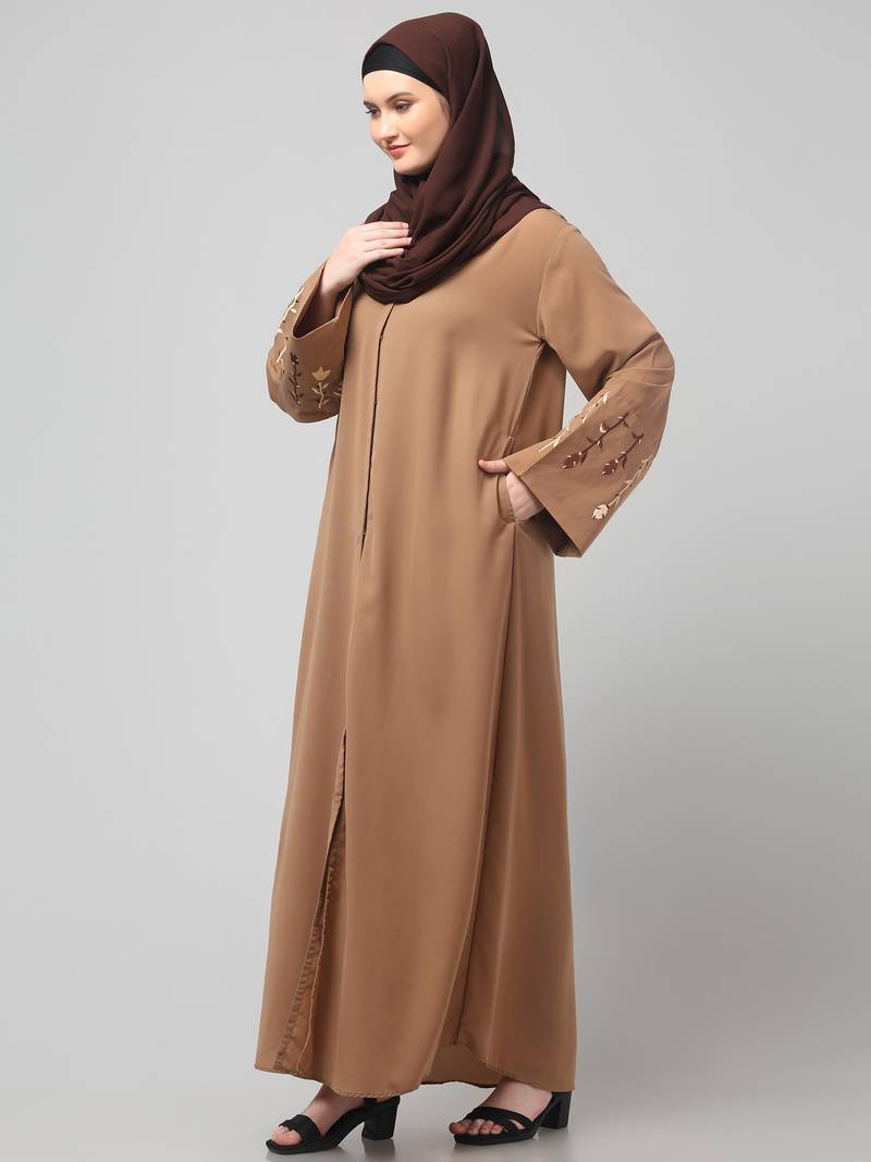 Product Name Embroidery At Sleeve 2 Side Pocket Front Open Abaya