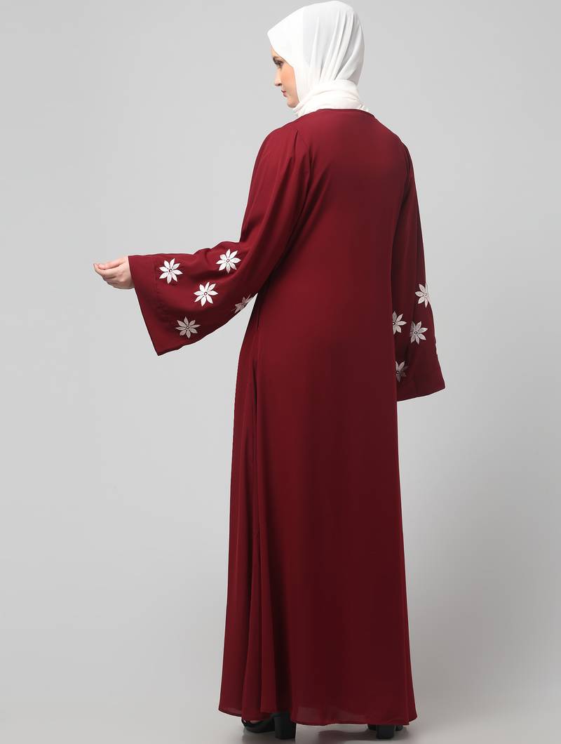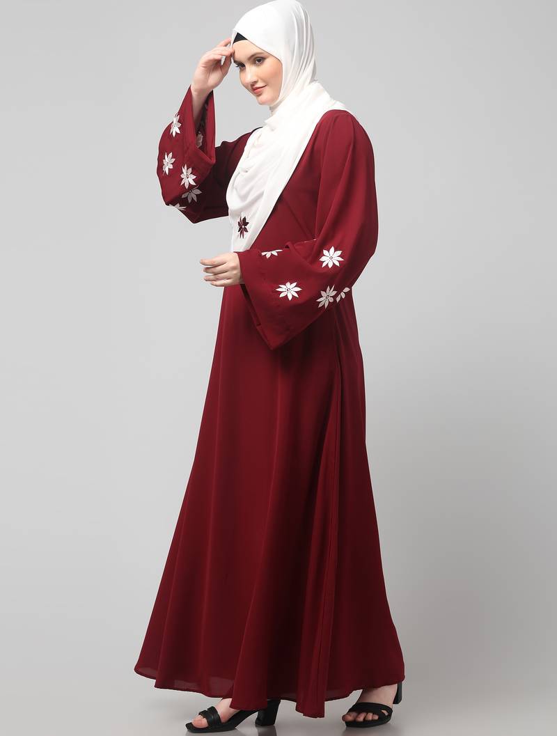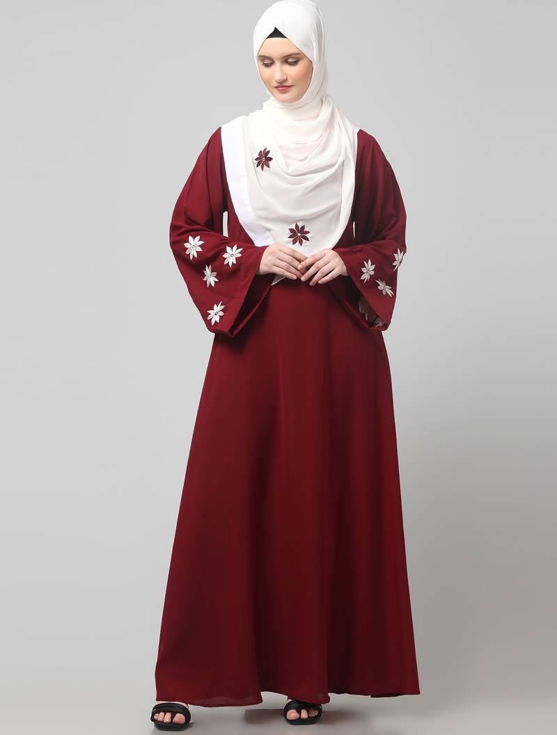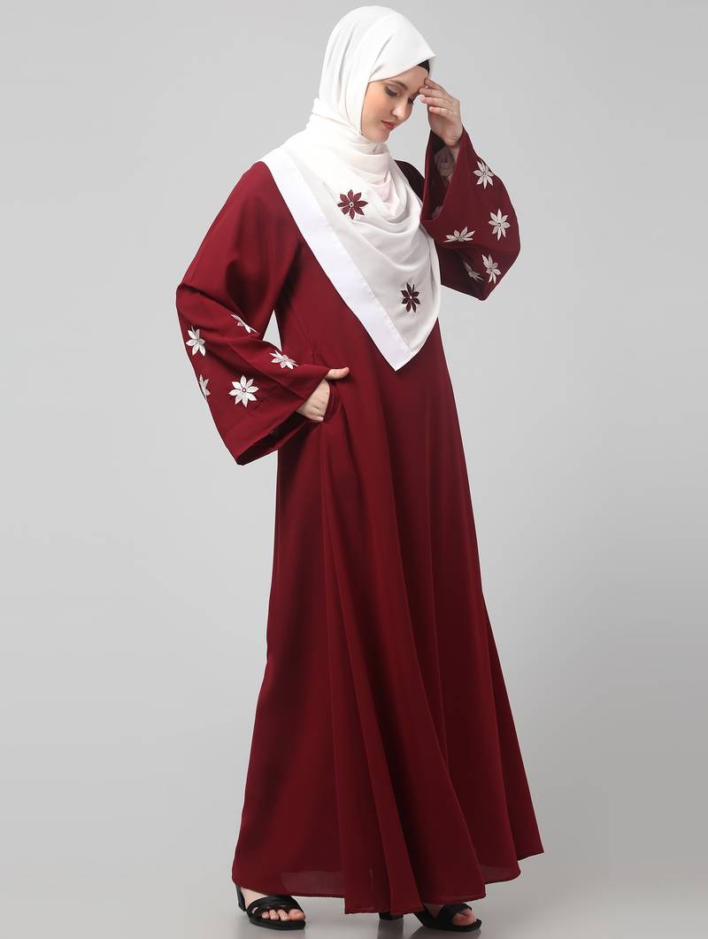 Flowers embboidery at sleeve and hijab a line flare at bottom abaya with hijab