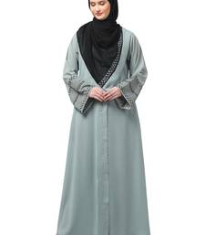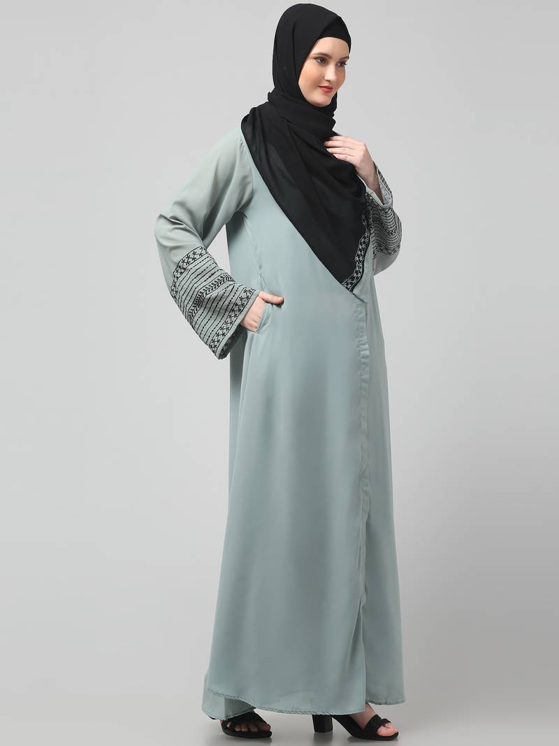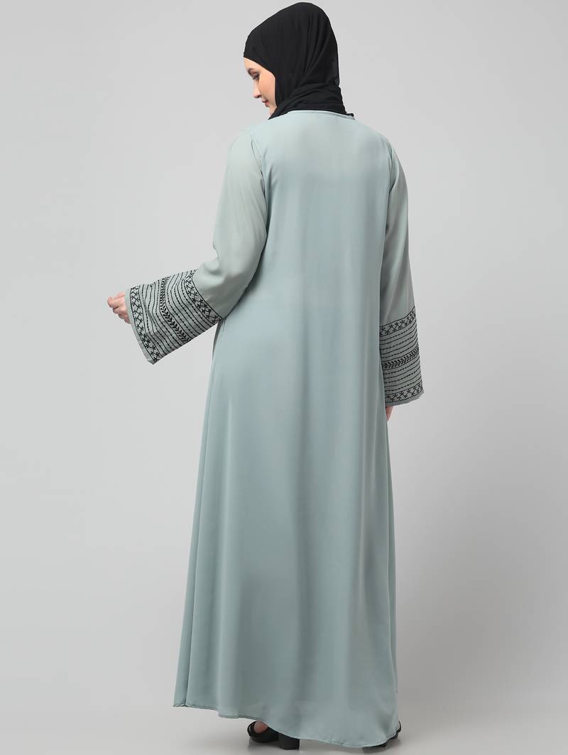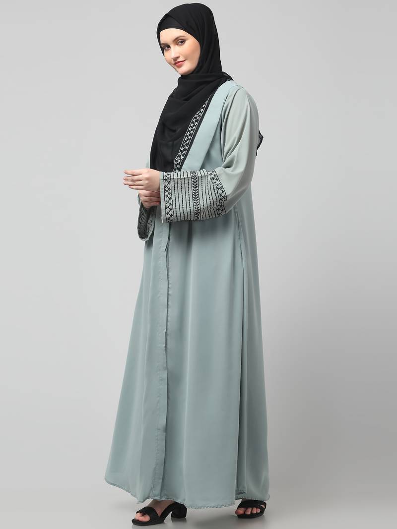 Sleeves and hijab flowers and lines embroidry front open abaya