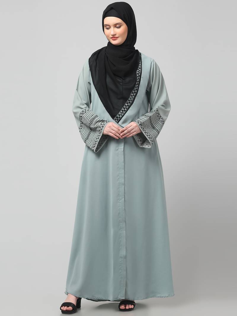 Product Name Sleeves And Hijab Flowers And Lines Embroidry Front Open Abaya