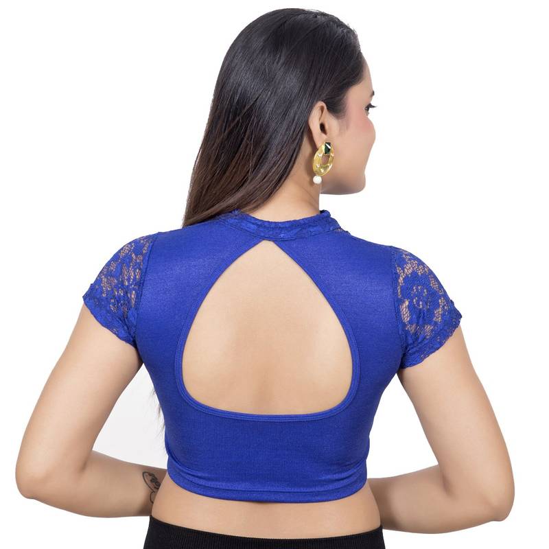 | Product Name | Royal Blue Lycra Stretchable Stand Coller Short Net Sleeves Readymade Saree Blouse | |