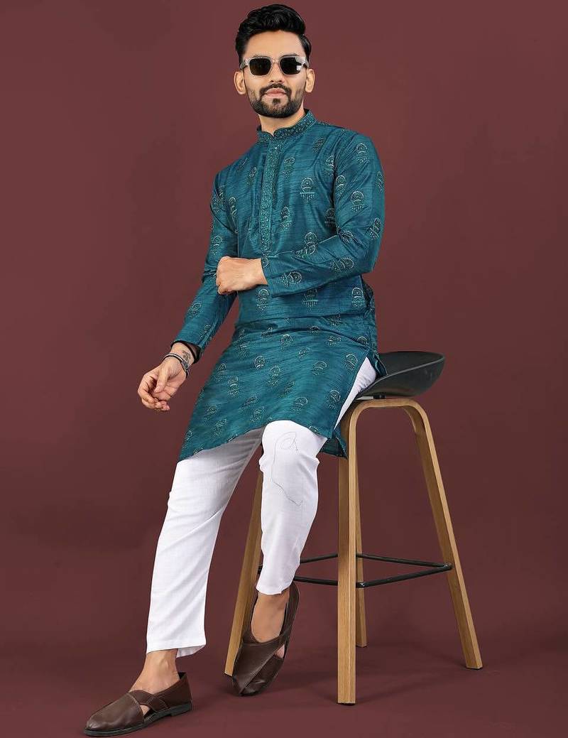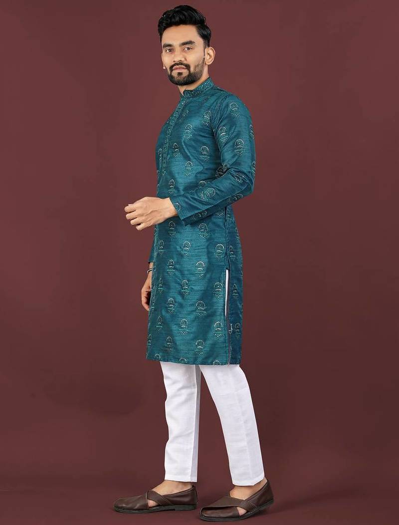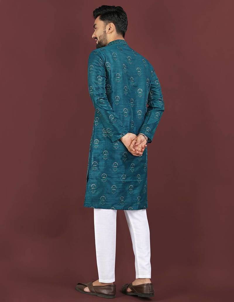 | Product Name | Blue Banglori Silk Embroidery Sequins Work Straight Men's Kurta Pyjama | |