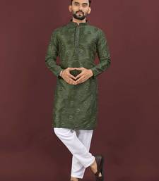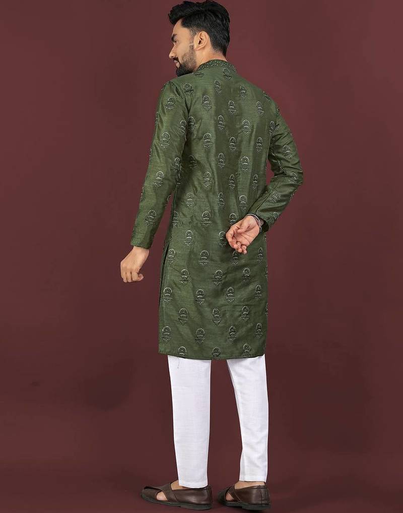 Green banglori silk embroidery sequins work straight men's kurta pyjama