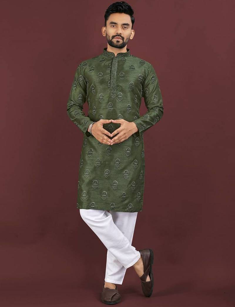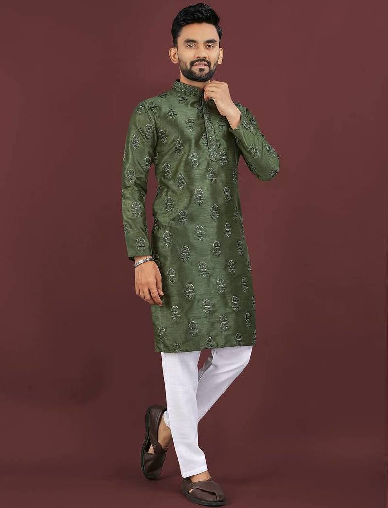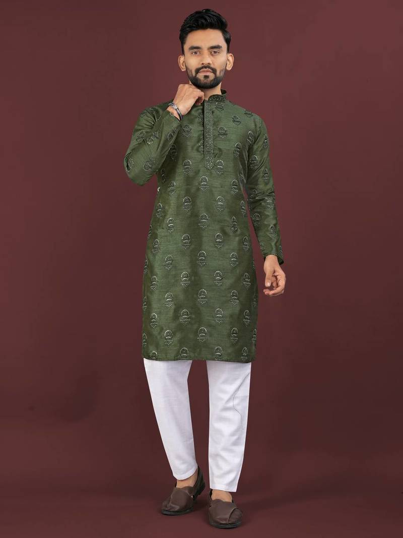 | Product Name | Green Banglori Silk Embroidery Sequins Work Straight Men's Kurta Pyjama | |