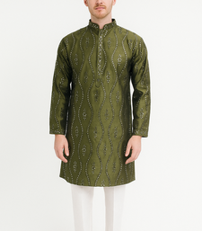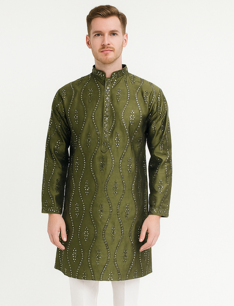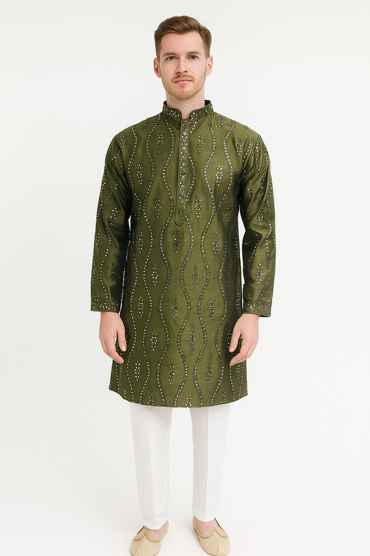 | Product Name | Green Silk Sequins Embroidery Straight Men's Kurta Pyjama | |