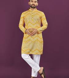 | Product Name | Mustard Rayon Laheriya Digital Print Crochet Work Embroidery Straight Men's Kurta Pyjama | |