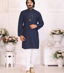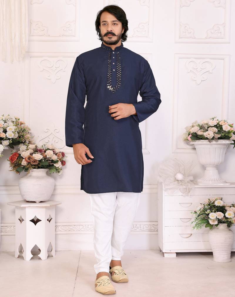 | Product Name | Navy Blue Silk Sequins Work Straight Men's Kurta Pyjama | |