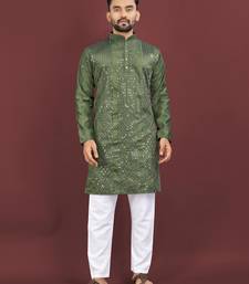 | Product Name | Olive Viscose Silk Sequins Embroidery Straight Men's Kurta Pyjama | |