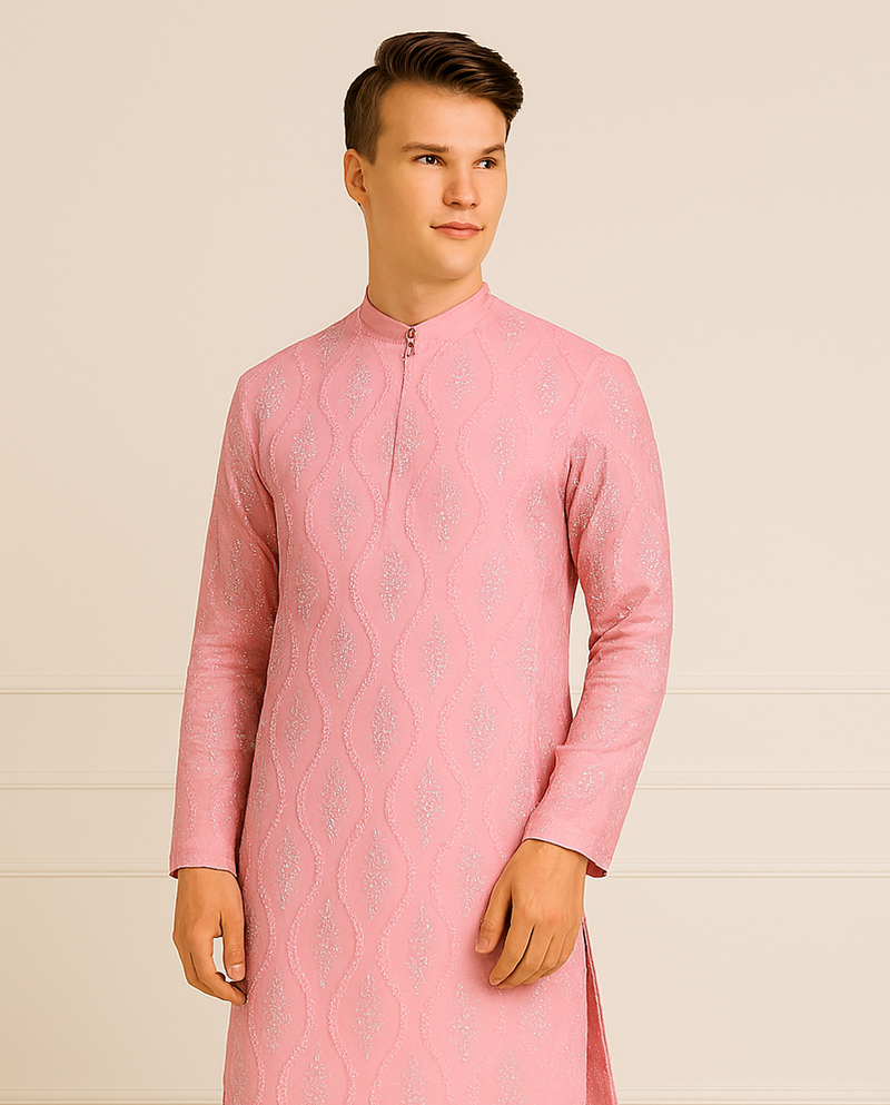 | Product Name | Pink Silk Sequins Embroidery Straight Men's Kurta Pyjama | |