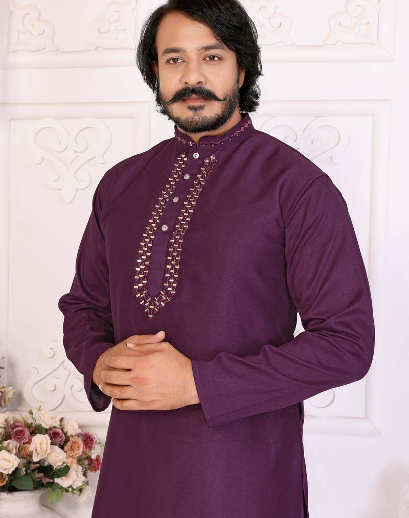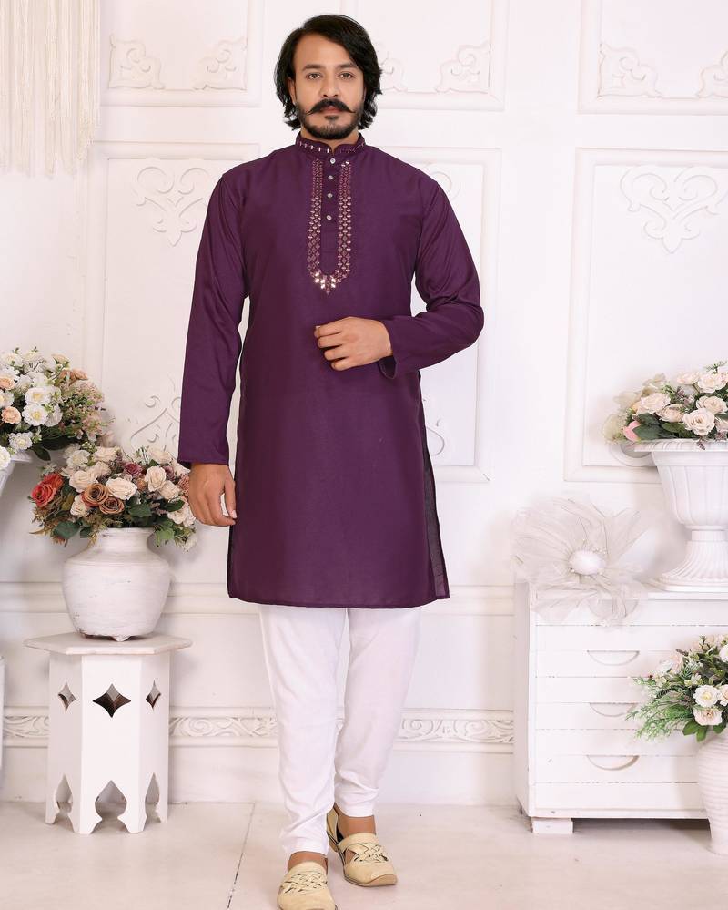 | Product Name | Purple Silk Sequins Work Straight Men's Kurta Pyjama | |