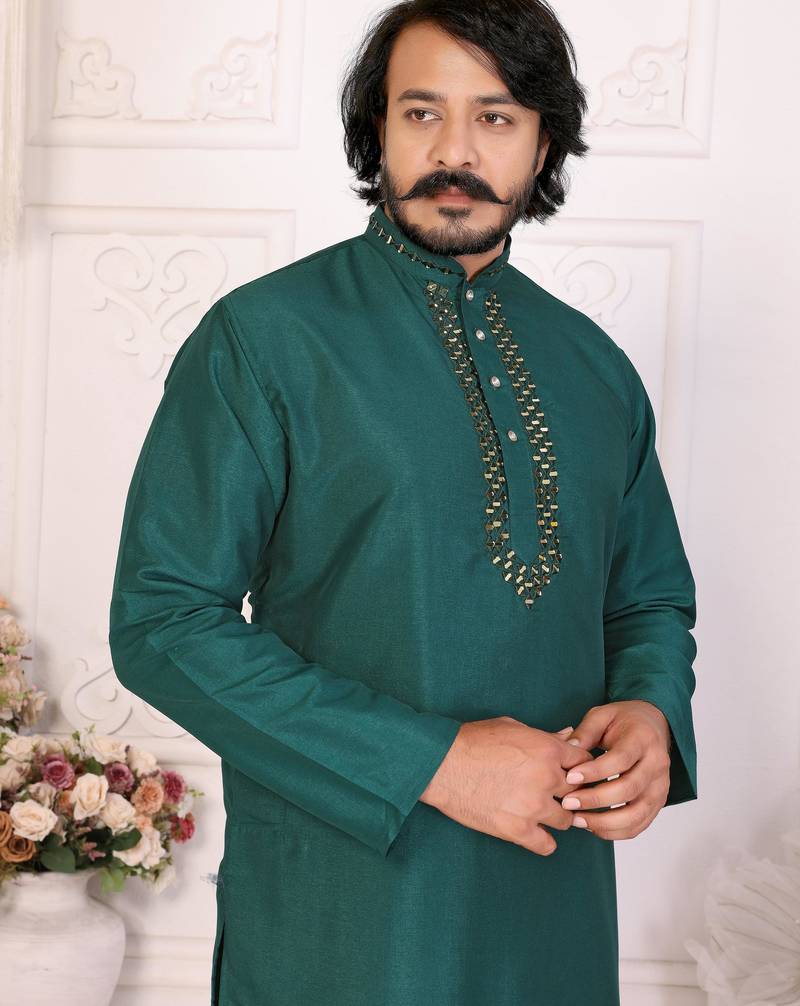 | Product Name | Teal Silk Sequins Work Straight Men's Kurta Pyjama | |