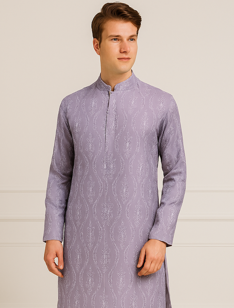 | Product Name | Violet Silk Sequins Embroidery Straight Men's Kurta Pyjama | |