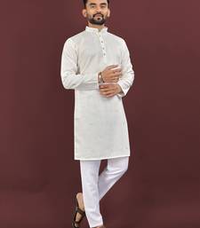 White viscose silk embroidery sequins work straight men's kurta pyjama