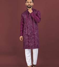 Wine viscose silk sequins embroidery straight men's kurta pyjama