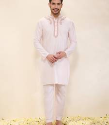 | Product Description | This Graceful Light Pink Kurta Showcases Exquisite Hand Embroidery On The Collar And Around The Placket, Adding Subtle Sophistication To Its Design. Teamed With Matching Narrow Pants, This Ensemble Embodies Timeless Elegance And Refined Style, Making It An Ideal Choice For Festive Celebrations Or Daytime Occasions.