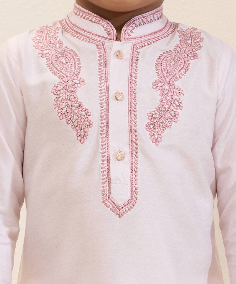 | Product Description | This White Embroidered Silk Kurta Set Embodies Classic Elegance With Its Luxurious Silk Fabric And Delicate Embroidery. The Pristine White Shade Adds Purity And Sophistication, Making It Ideal For Festive Celebrations, Weddings, Or Formal Events. Its Refined Silhouette And Intricate Craftsmanship Create A Timeless, Graceful, And Regal Ethnic Look.