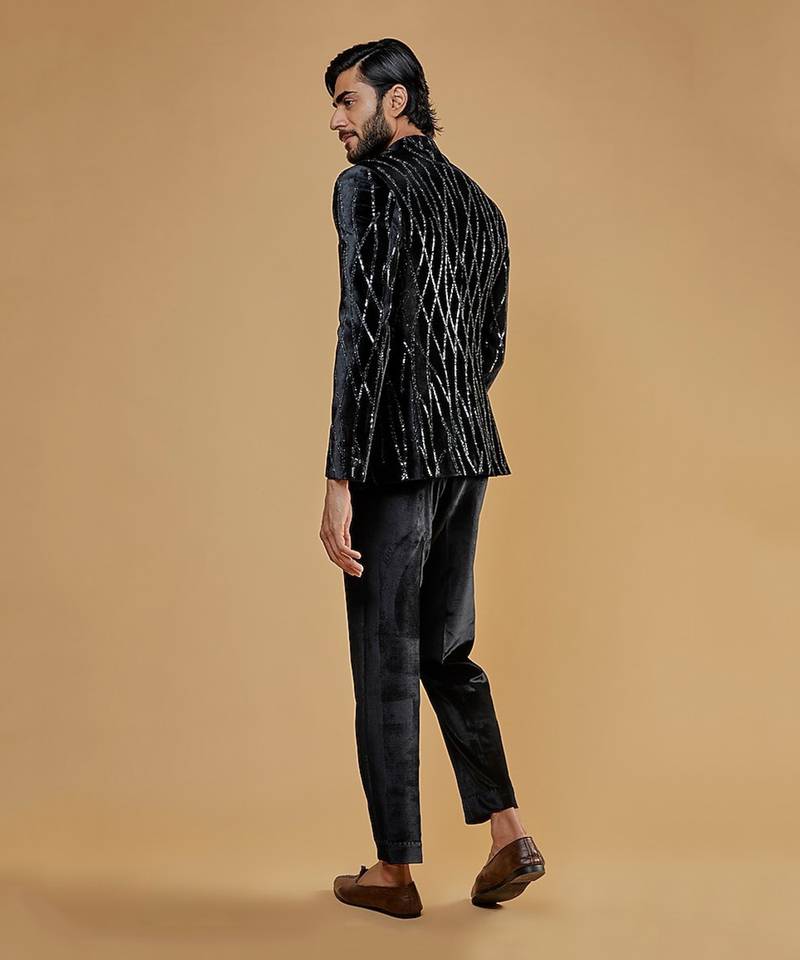 | Product Description | Black Swede Embroidered Jodhpuri With Swede Pants. |