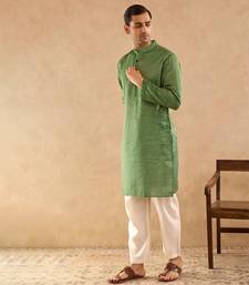 Green woven chanderi kurta set