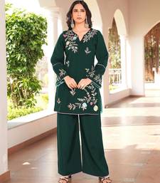 | Product Name | Dark Green Embroidered Art Silk Straight Cut Kurta Culottes Set | |