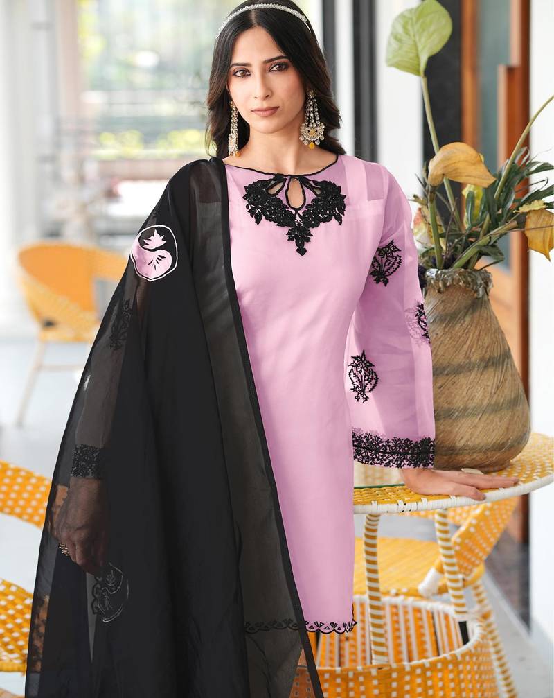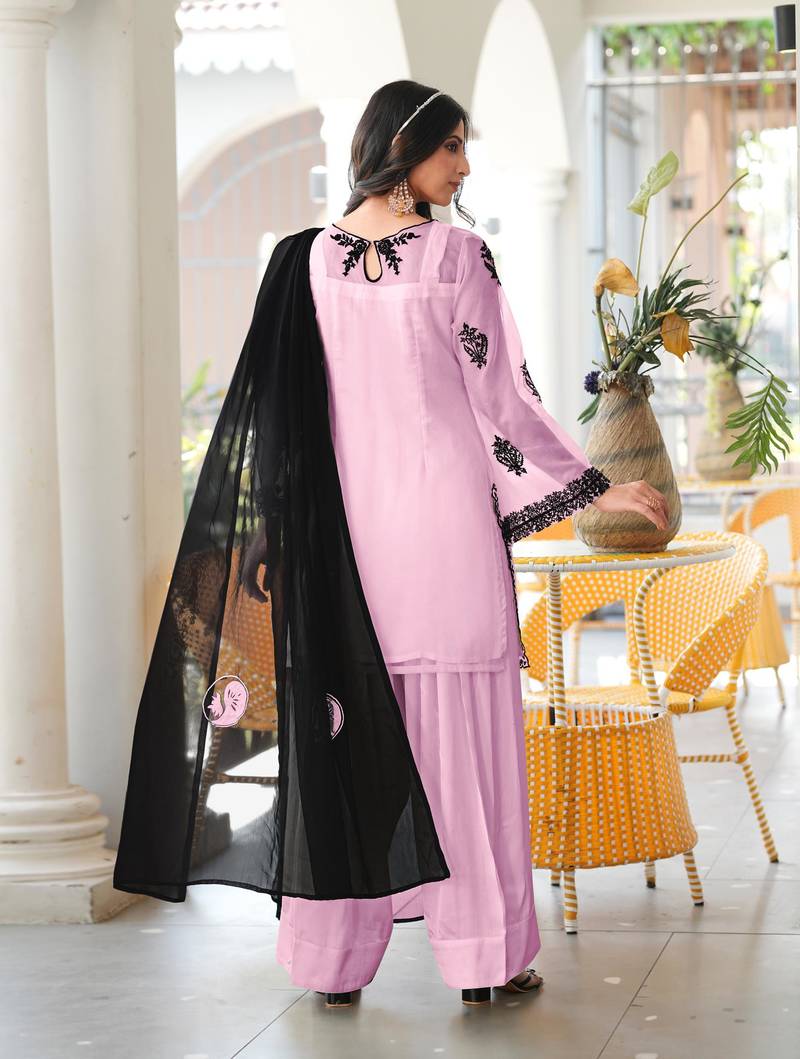 | Product Name | Light Pink Embroidered Organza Stitched Straight Cut Kurta Farshi Salwar Dupatta Readymade Suits | |