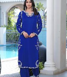 | Product Name | Royal Blue Embroidered Modal Satin Straight Cut Kurta Culottes Set | |