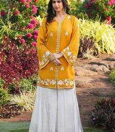 Product Name Yellow Hand Embroidery Modal Satin Straight Cut Kurta