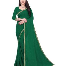 Green embroider border with placement mirror work lycra blend saree with blouse piece.
