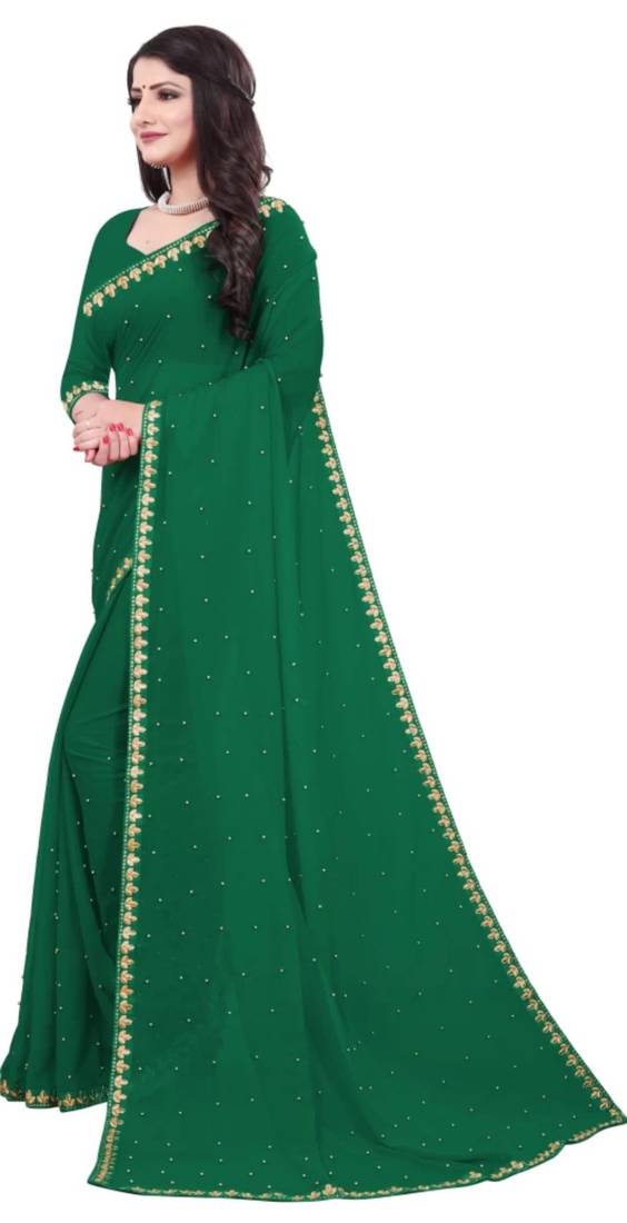 | Product Name | Green Embroider Border With Placement Mirror Work Lycra Blend Saree With Blouse Piece. | |