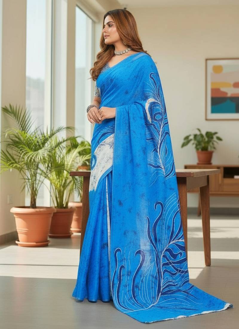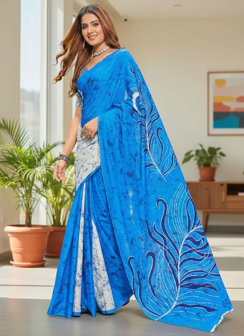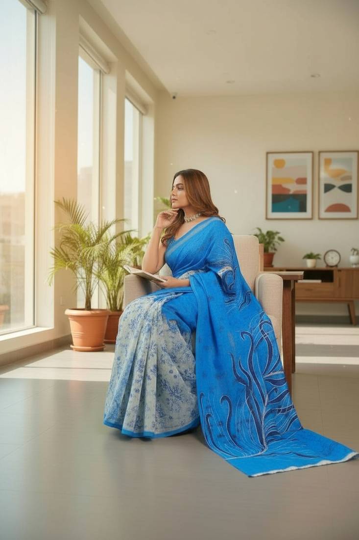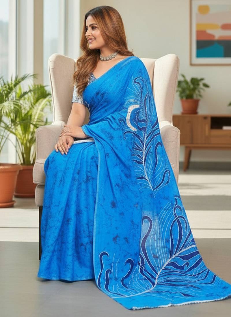 | Product Name | Aqua Blue Color Bagru Fancy Hand Printed Designer Saree With Blouse | |