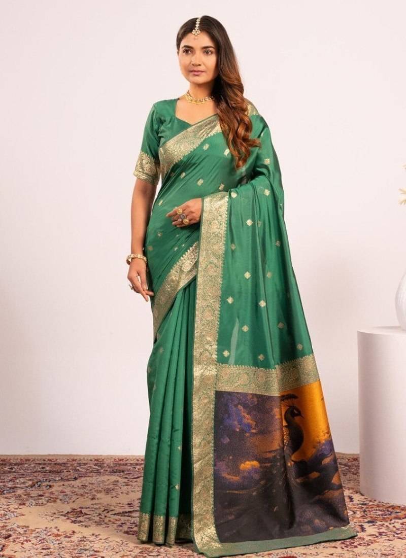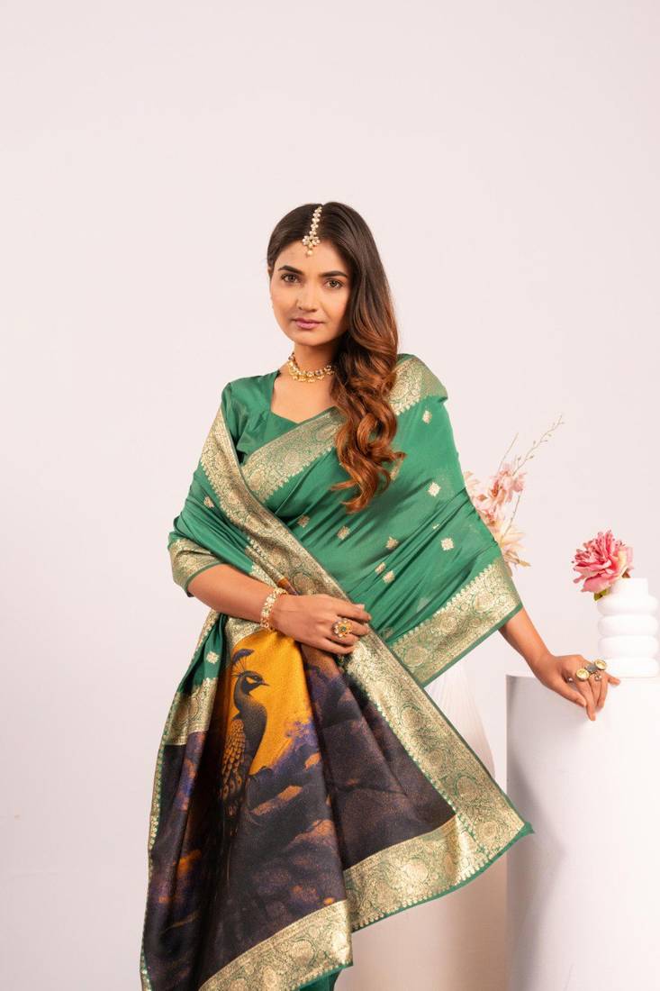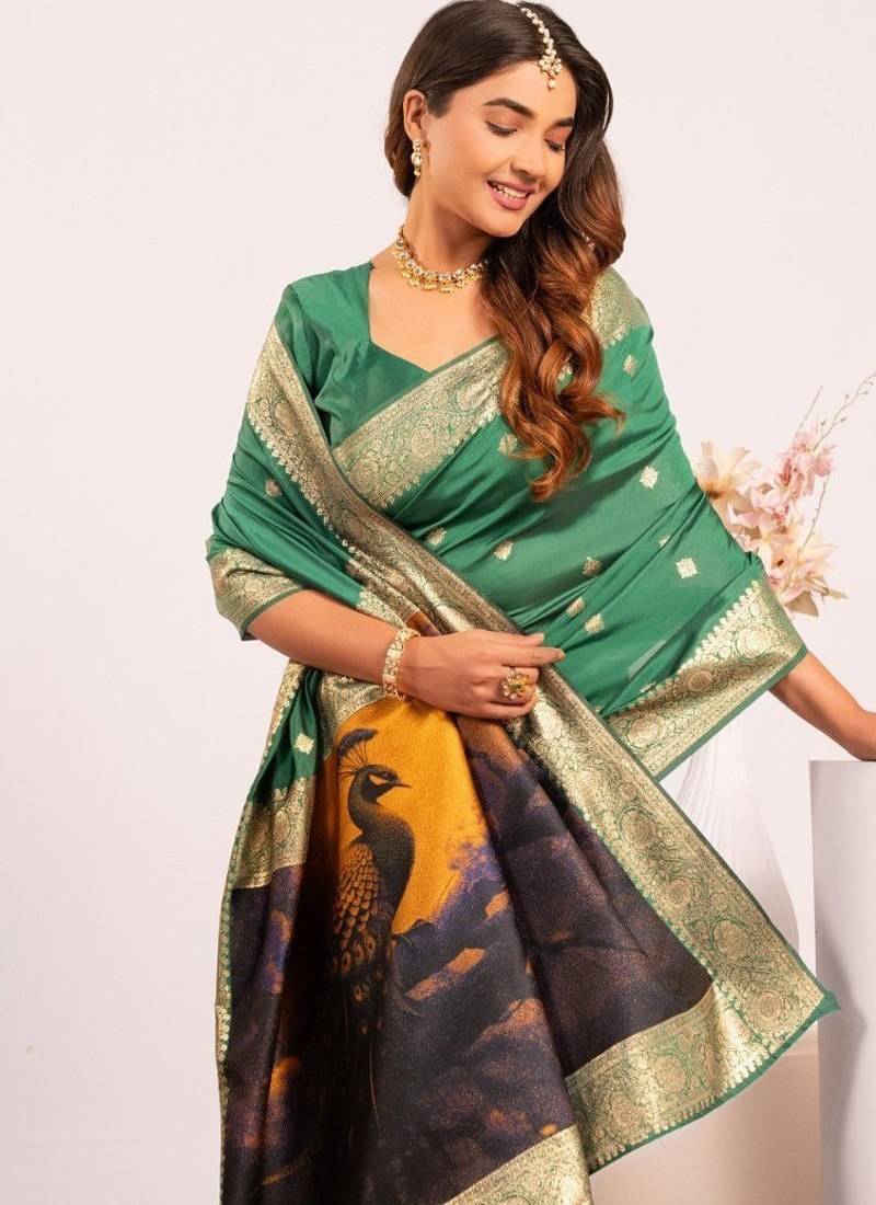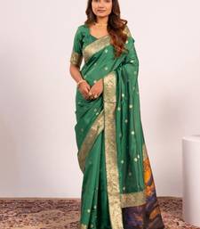 Green color banarasi art silk saree with blouse