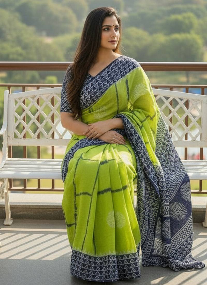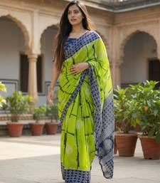 Green color jaipur block print designer saree with blouse