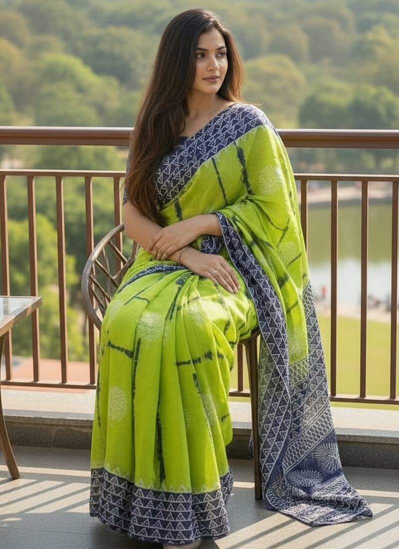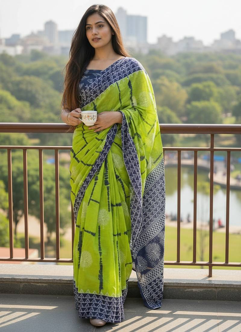 | Product Name | Green Color Jaipur Block Print Designer Saree With Blouse | |