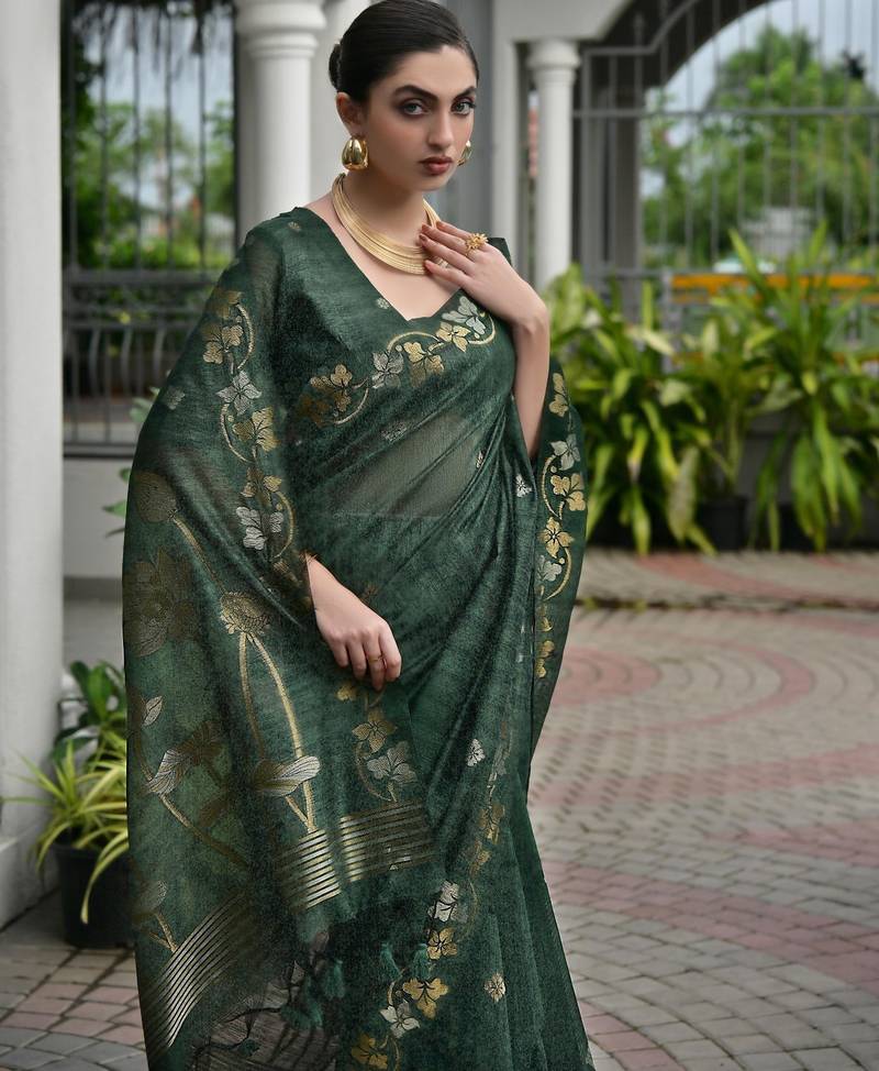 | Product Name | Green Color Jute Art Silk Saree With Blouse | |