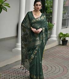 Green color jute art silk saree with blouse