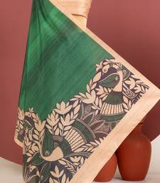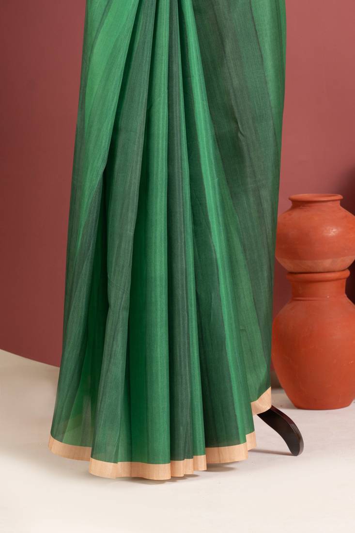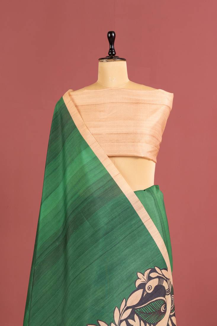 Green color tussar art silk saree with plain blouse