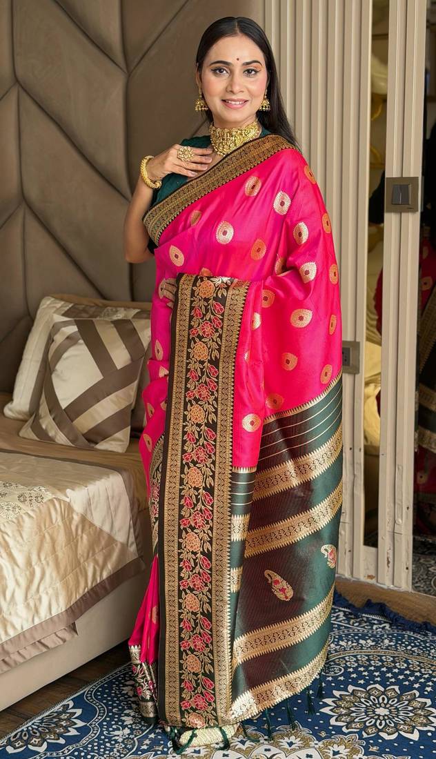 | Product Name | Pink Color Art Silk Saree With Contrast Blouse | |