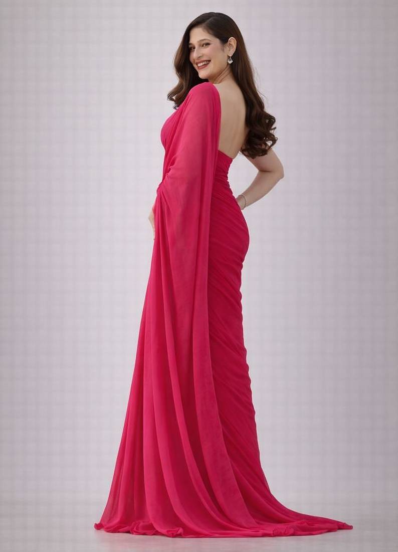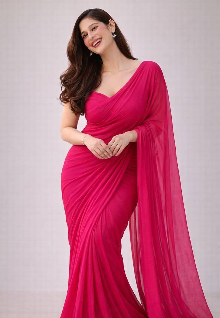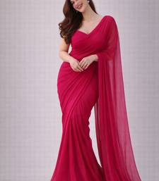 Raspberry color plain georgette designer saree with blouse