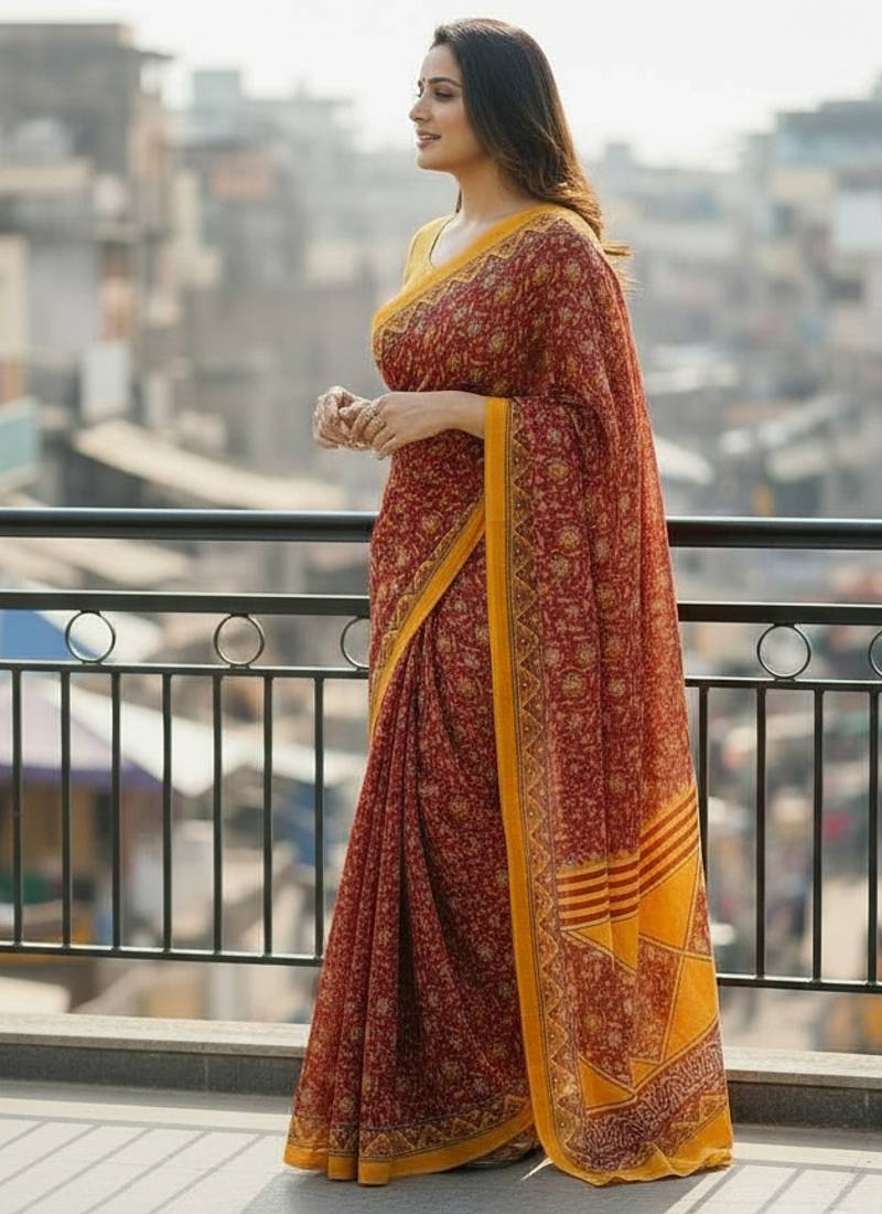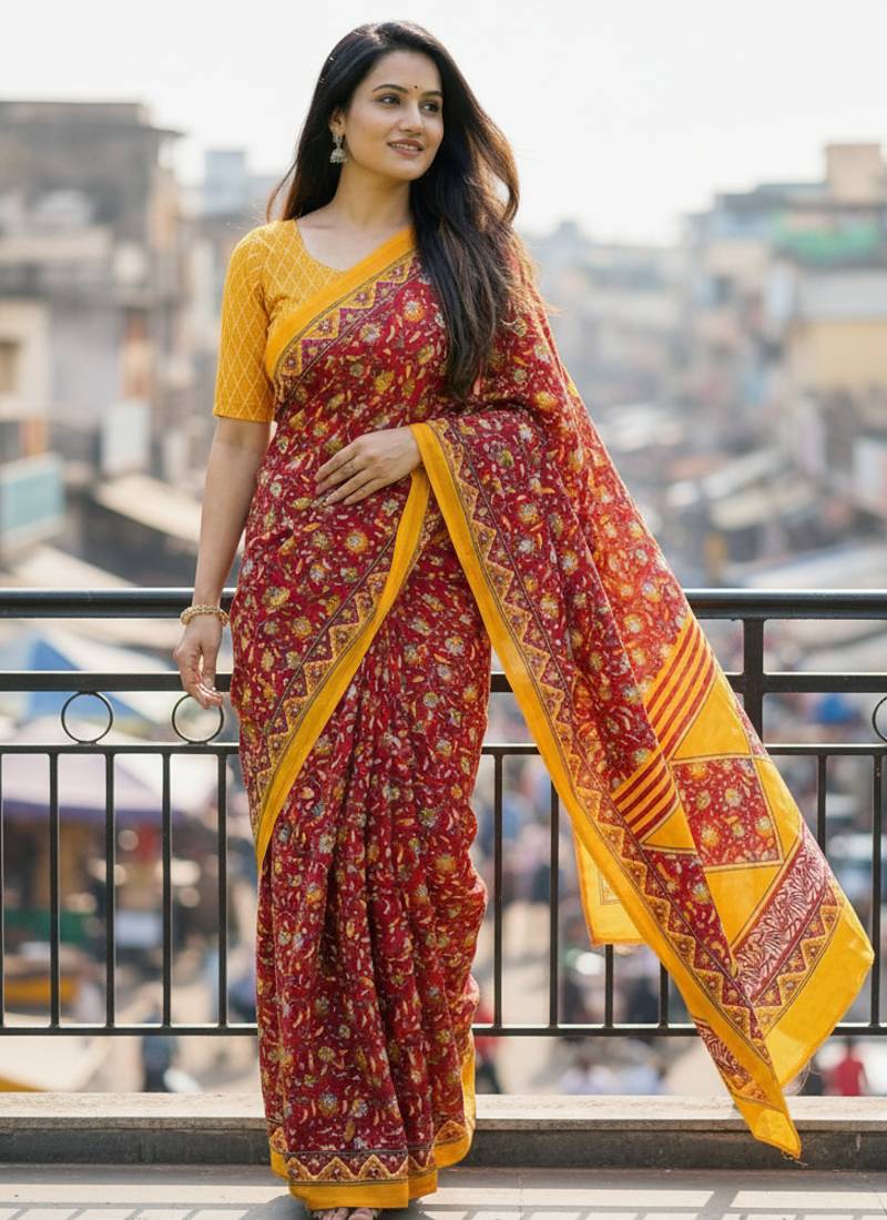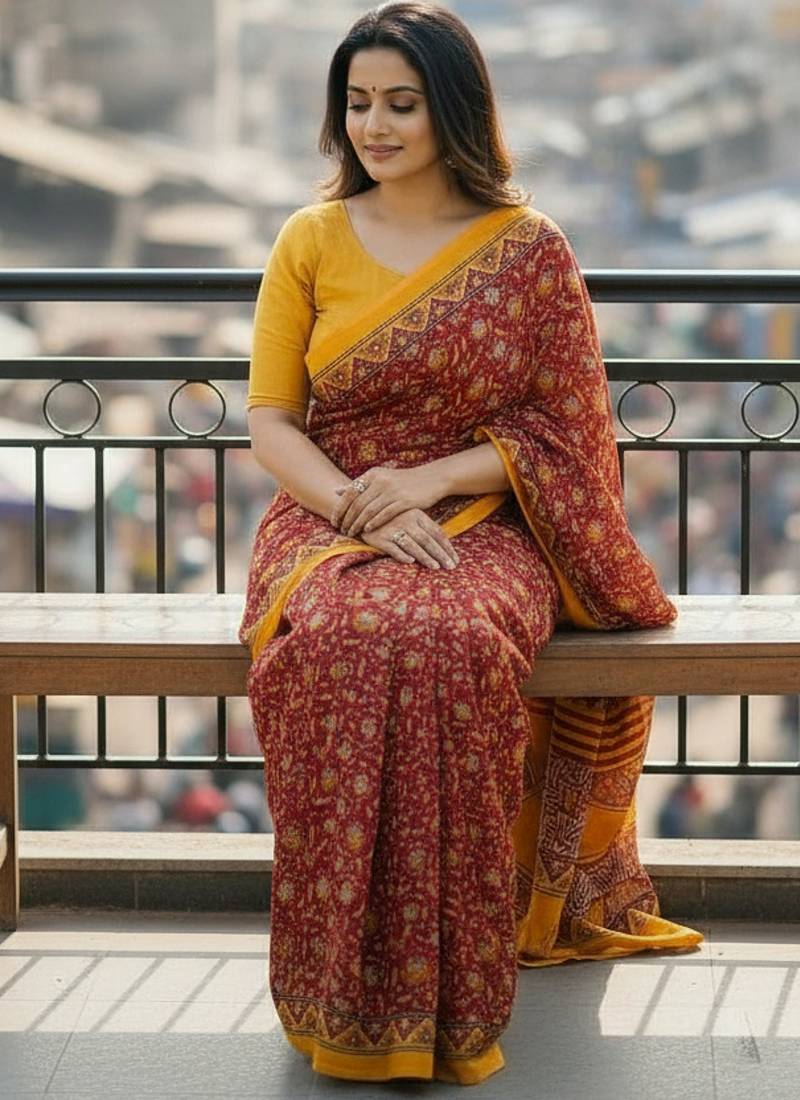 | Product Name | Red Color Jaipur Block Print Designer Saree With Blouse | |