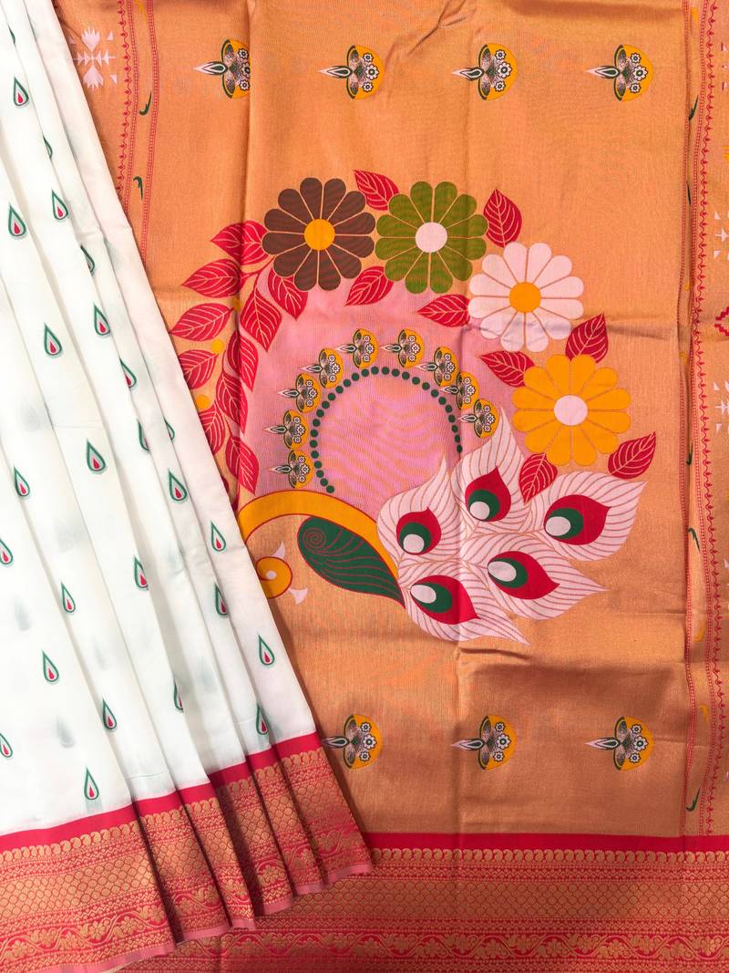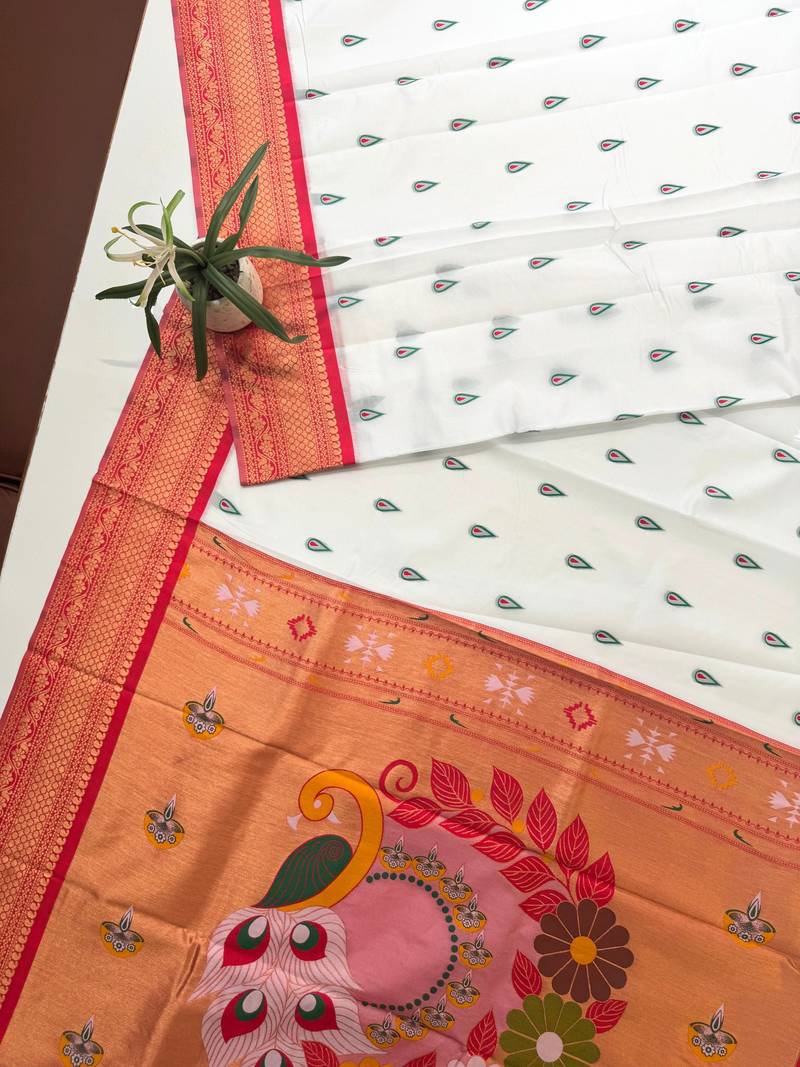 | Product Name | White Color Banarasi Paithani Art Silk Saree With Blouse | |