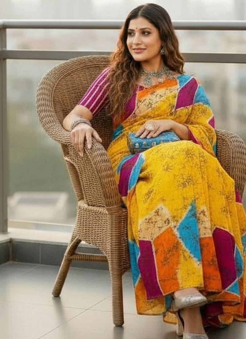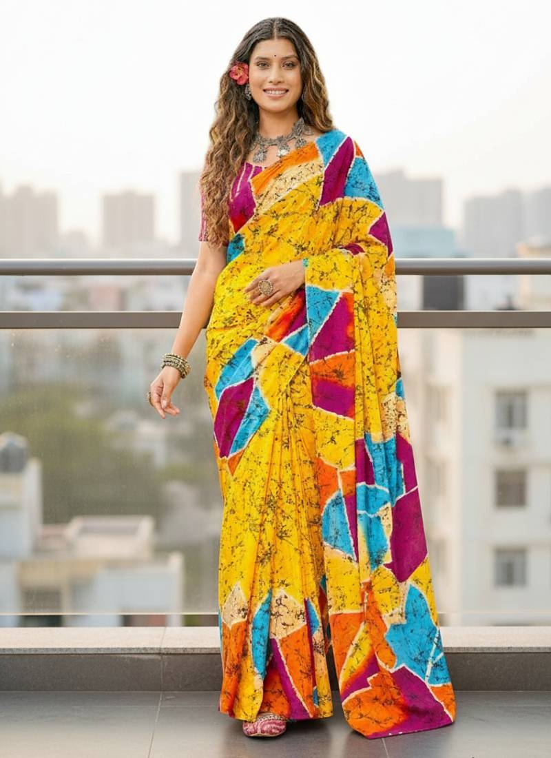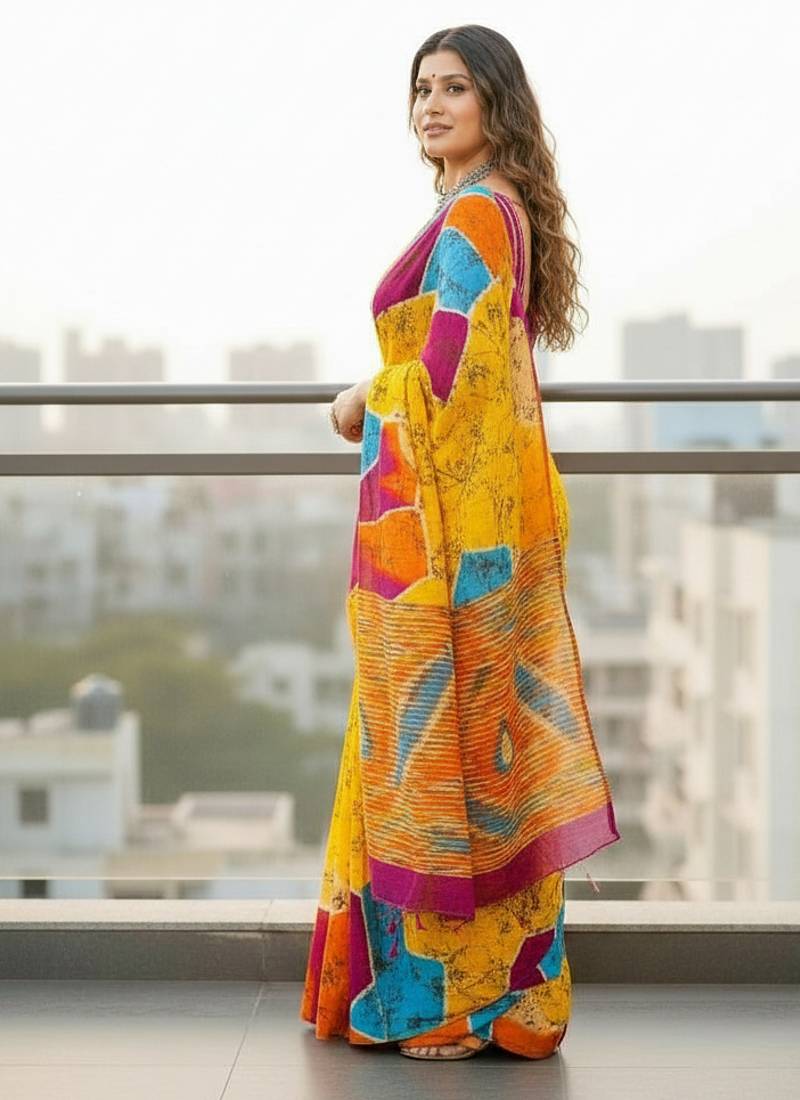 | Product Name | Yellow Color Bagru Fancy Hand Printed Designer Saree With Blouse | |