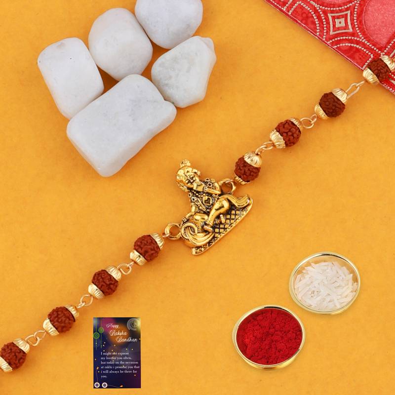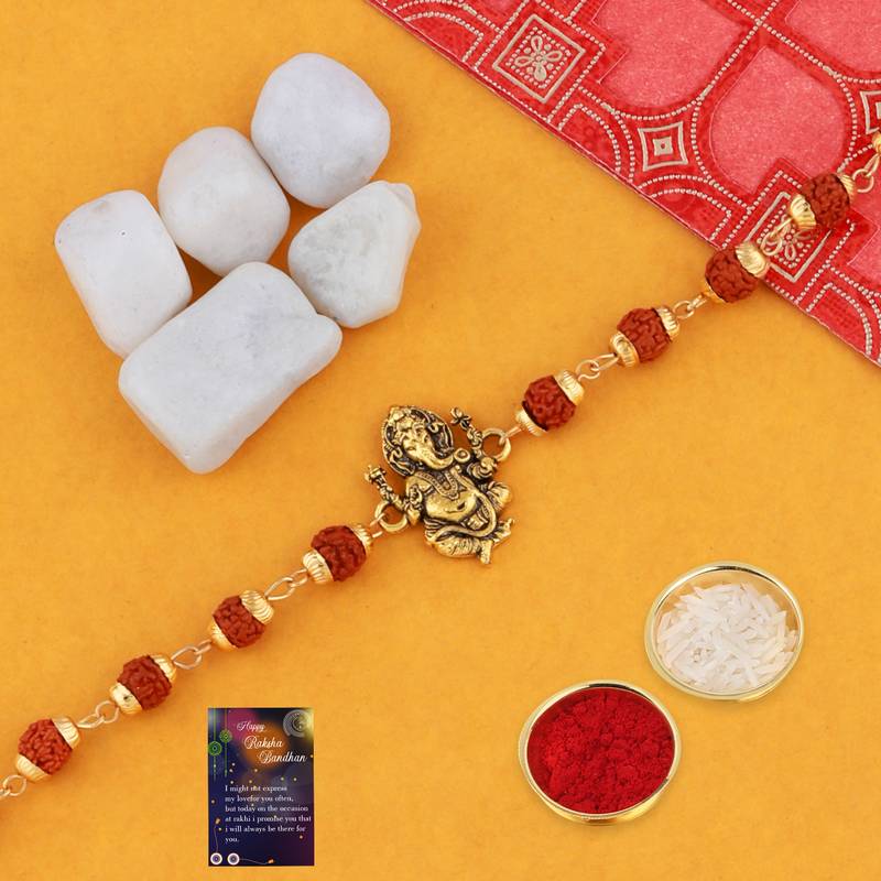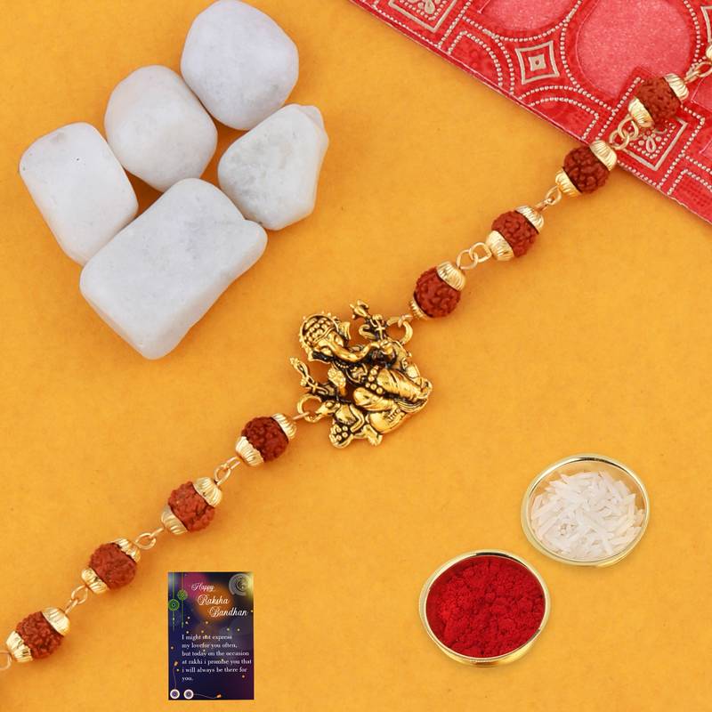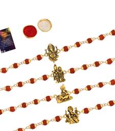 Product Name Designer Rudraksh 4 Rakhi Combo Stylish For Bhai With Roli Chawal And Greeting Card