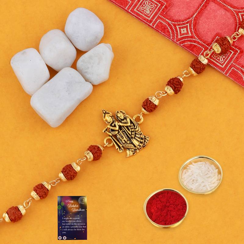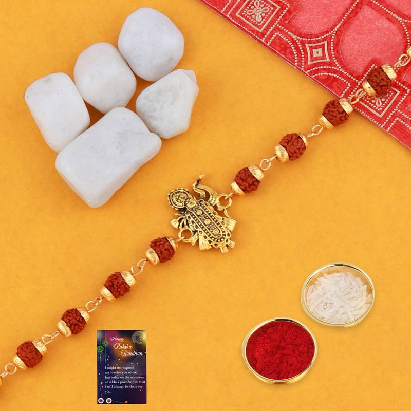 | Product Name | Elegant Rudraksh 4 Rakhi Combo Stylish For Bhai With Roli Chawal Card 1 Pooja Thali | |