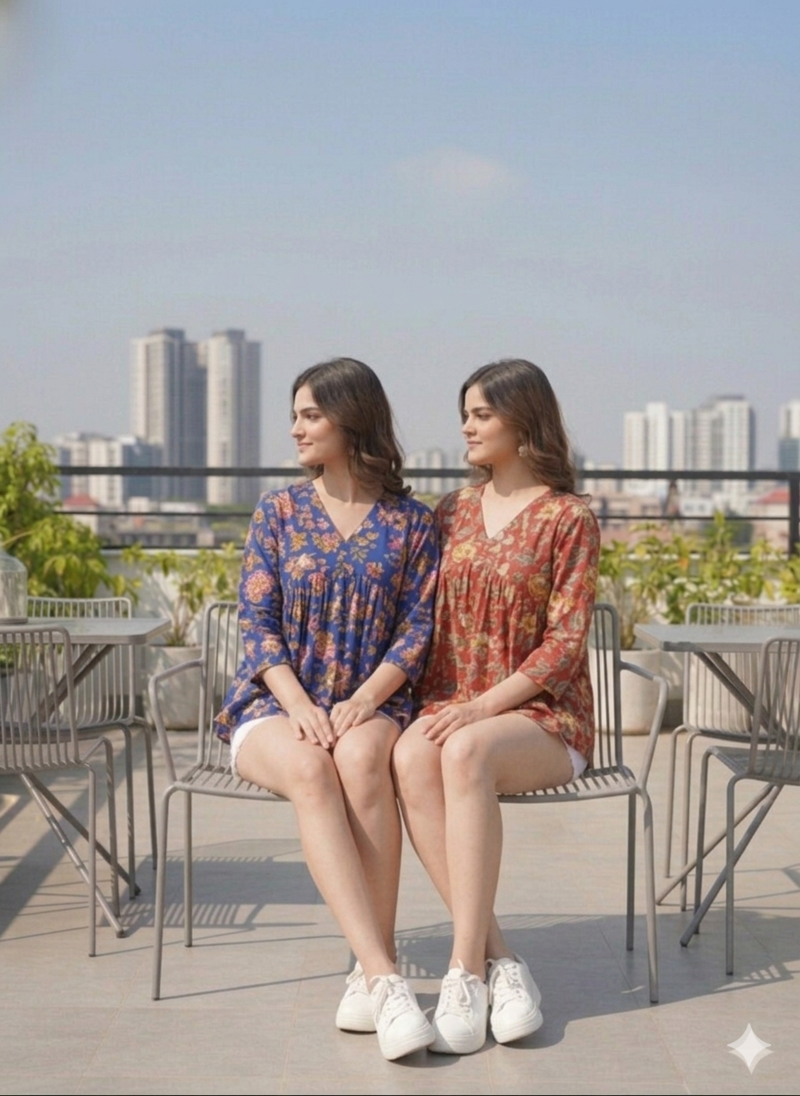Double The Style, Double The Comfort. Elevate Your Everyday Wardrobe With Our Noor Startup Startup Pack Of 2 Women’s Designer Tops. This Exclusive Combo Features Two Stunning Handprinted Tunics In Vibrant Cobalt Blue And Deep Crimson Red, Designed For The Modern Woman Who Refuses To Compromise On Elegance Or Ease.