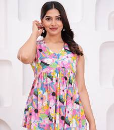 | Product Description | Elevate Your Casual Wardrobe With This Chic And Comfortable Rayon Designer Topper From Noor Startup. Designed For The Modern Woman Who Loves A Blend Of Traditional Prints And Contemporary Silhouettes, This Top Is A Versatile Addition To Any Closet. Premium Fabric: Crafted From High Quality, Breathable Rayon That Feels Soft Against The Skin And Ensures All Day Comfort. Vibrant Floral Design: Features A Multi Color, Tropical Inspired Floral Print With A Mix Of Pink, Yellow, And Turquoise Tones—Perfect For Brightening Up Your Day. Elegant Silhouette: Designed In A Babydoll/Tunic Style With A Flattering V Neckline And A Gathered Waistline That Creates A Graceful Flare. Versatile Style: Whether You're Heading To A Brunch Date, A Casual Office Day, Or A Weekend Outing, This Sleeveless Top Pairs Perfectly With White Trousers, Leggings, Or Denim. Styling Tip: Pair This Vibrant Top With White Fitted Pants And Pearl Earrings (As Seen In The Image) For A Clean, Sophisticated Summer Look! |