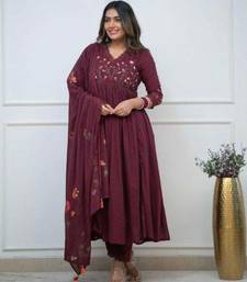 | Product Description | Elevate Your Ethnic Wardrobe With This Stunning 3 Piece Anarkali Suit. Crafted For Grace And Comfort, This Ensemble Features A Rich Wine Colored Palette Paired With Delicate Floral Artistry, Making It A Perfect Pick For Weddings, Festivals, Or Evening Celebrations. |