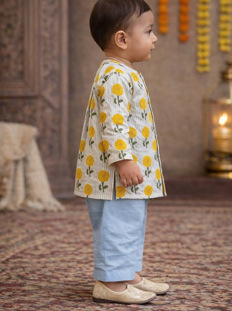 Baby boy floral printed kurta pajama set (inb-bluestripes)