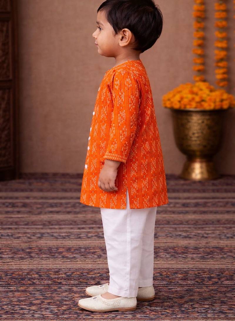 Baby boy printed kurta pajama set (inb-orangedobby)