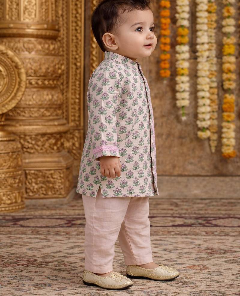 Baby boy printed kurta pajama set (inb-pinkbooti)